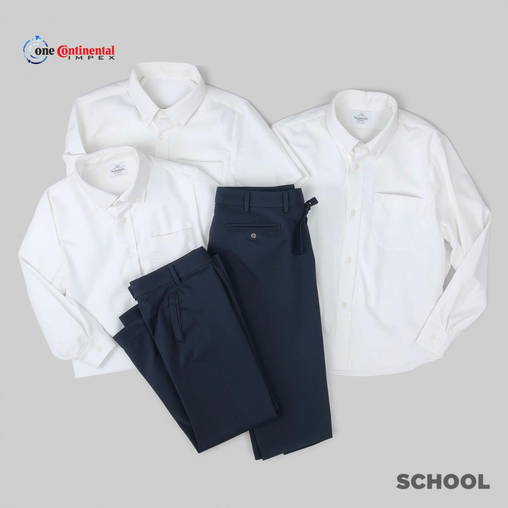 School shirts and trousers from One Continental Impex are designed for comfort, durability, and daily school wear. Suitable for schools and educational institutions, these uniforms are made to withstand regular use and frequent washing.